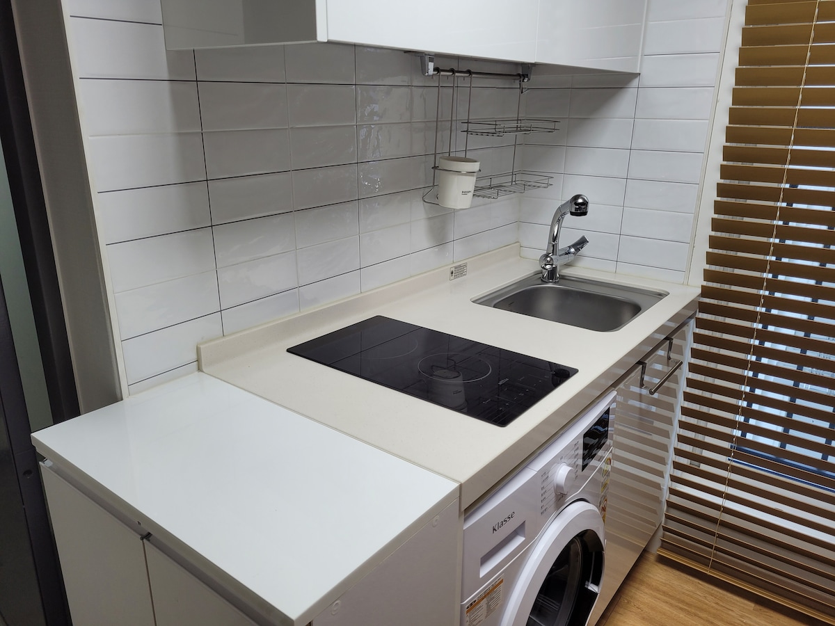 unit is equipped with private bathroom and private mini-kitchen in apartment-style. 원룸 형식으로 된 숙소입니다. 룸 안에 작은 화장실과 작은 싱크대(라면 끓여먹을정도)가 있습니다. 숙박 전용 숙소이기떄문에, 다른 게스트들을 위해 모임과 파티는 불가합니다. 편안한 휴식공간으로 이용하실 분만 예약해 주세요.
