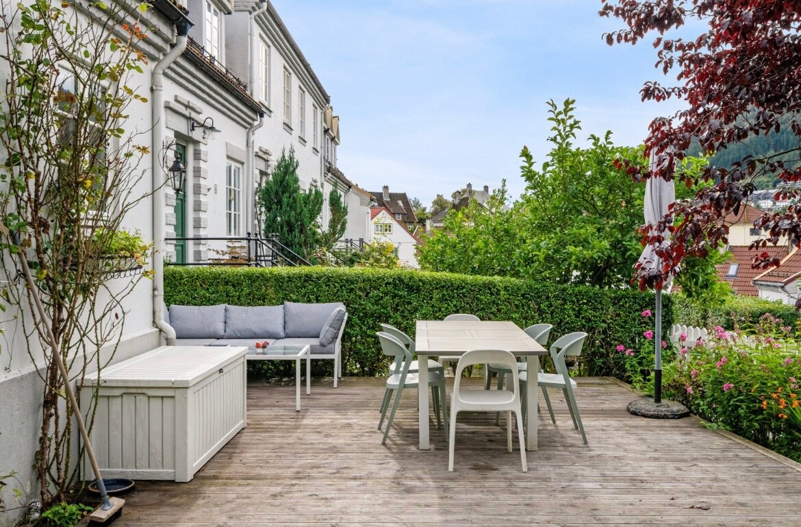 Dobrodošli v naši sodobni in družinam prijazni vrtni vrstni hiši. Hiša se nahaja v edinem vrtnem mestu v Bergnu in ima več kot sto let staro zgodovino. Tukaj boste našli 4 prostorne spalnice, 2 kopalnici in očarljiv vrt z več terasami. Območje je mirno z malo prometa, hkrati pa imate kratko pot do priljubljenih restavracij in kavarn. Hiša je tudi odlično izhodišče za doživetje mesta - Bryggen, Ulriken in Fløyen so v bližini. Enostaven dostop z lahko železnico (približno 5 minut stran) ali parkiranje na ulici.