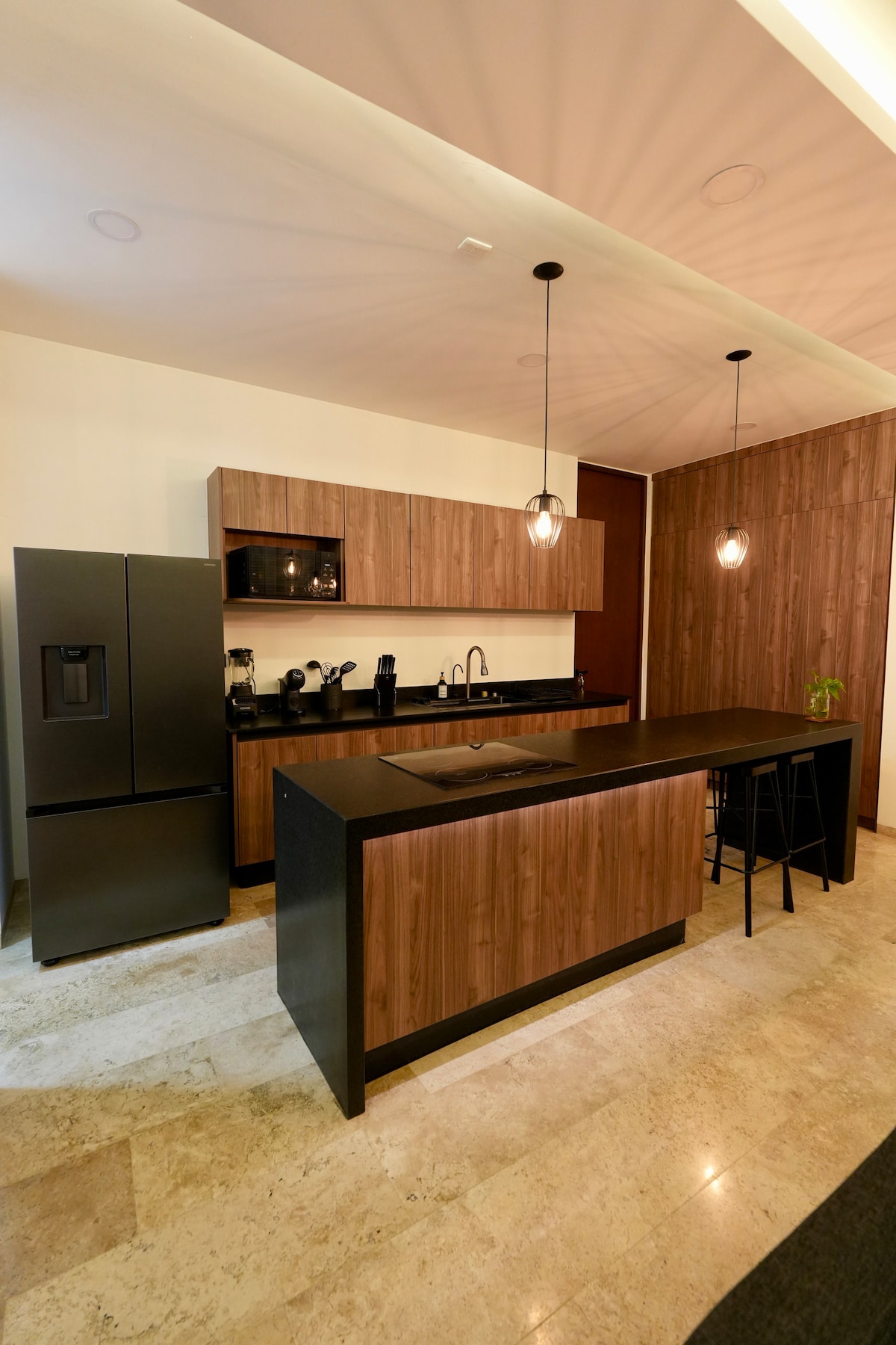 Sodobno in elegantno prenočišče v ograjeni skupnosti z non stop varnostjo — kot nalašč za delo na daljavo ali počitnice. Dve spalnici (King + Queen), vsaka z zasebno kopalnico, popolnoma opremljeno kuhinjo, namenskim delovnim prostorom, zasebnim bazenom, senčnim prostorom za žar in parkiriščem. Nahaja se v mirnem in varnem območju, le 5 minut od Periférica in 25 minut od središča Méride. Udobno in funkcionalno bivanje v severnem delu mesta.