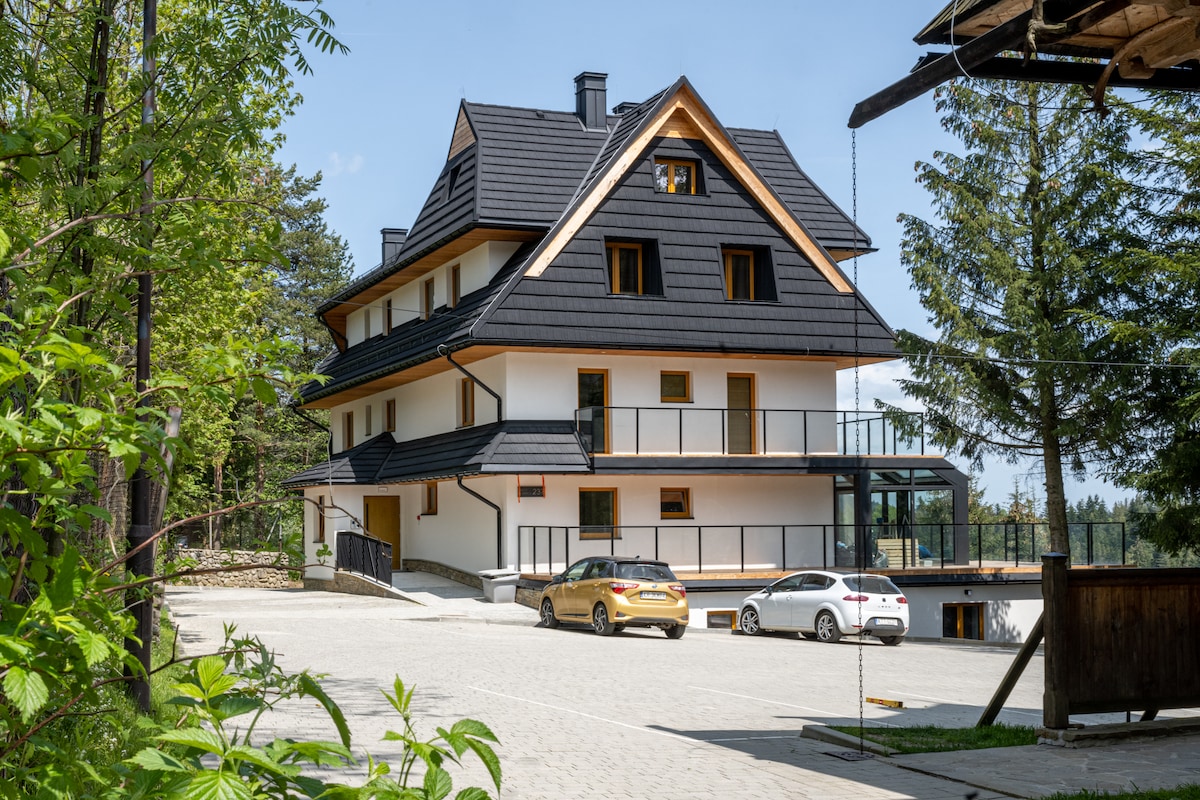 Sodobno stanovanje s čudovitim razgledom na Tatre, blizu Zakopaneja, v Bustryju, eni najvišjih lokacij na Poljskem. Lokacija vam omogoča, da se izognete gneči, ki jo tako pogosto najdemo v glavnem mestu gorovja Tatra, hkrati pa je odlično izhodišče za katerikoli kraj v Podhaleu. Idealno za hojo ali kolesarjenje. V bližini so številne trgovine, smučišča in taverne z regionalno hrano, glasbo in edinstvenim visokogorskim vzdušjem.