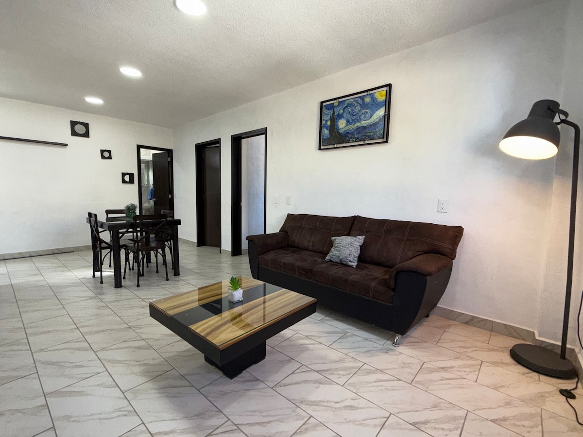 Pozdravljeni, dobrodošli na oddelku Polanco. To stanovanje je idealno za obisk San Luis Potosíja. Imamo vse, kar potrebujete za obisk, kot so klimatska naprava, kuhinjska niša, pametna televizija z Netflixom, Wi-Fi, aparat za kavo in zaprto parkirišče. Nahajamo se v soseski Polanco, 100 metrov od UASLP, Parque Morales, Central Hospital in 50 metrov od Avenide Carranza. Uživajte v enem najlepših, varnih in mirnih delov mesta. Z veseljem vas bomo sprejeli!!! 😃