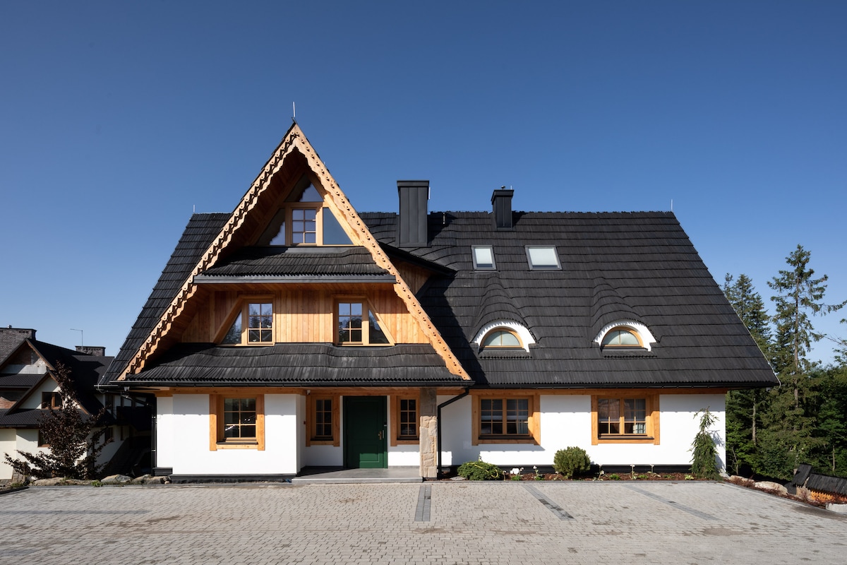 Sprostite se v tem mirnem in elegantnem bivališču. Sedite na verandi in globoko vdihnite s skodelico sveže kave, pripravljene v stanovanju. Poslušajte ptice, opazujte razgled na celotno panoramo Tatra Mountains. Ali pa ležite na lesenih tleh neposredno v kaminu. Pozimi lahko že dosežete smučišča na smučišču; poleti se sprehajalne in pohodniške poti začnejo v gozdu tik za stanovanjem.