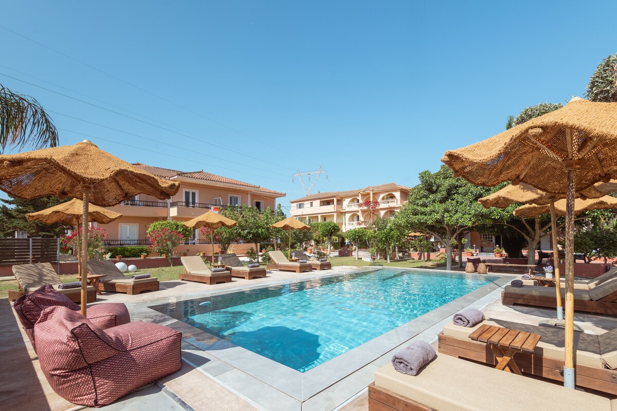 " Erietta" stoji veličastno na vrhu hriba in ponuja čudovit razgled na Jonsko morje. Apartma v "Erietta" je prostoren, udoben in daje občutek gostom, da so doma. Z vaše verande si lahko ogledate morje, vrt, bazen in oljke. V sklopu objekta se nahaja tudi bar-restoran, kjer lahko uživate v številnih grških in lokalnih jedeh. Ob dnevih, ko temperatura ni dovolj visoka za plavanje, lahko temperaturo bazena prilagodimo do 28°