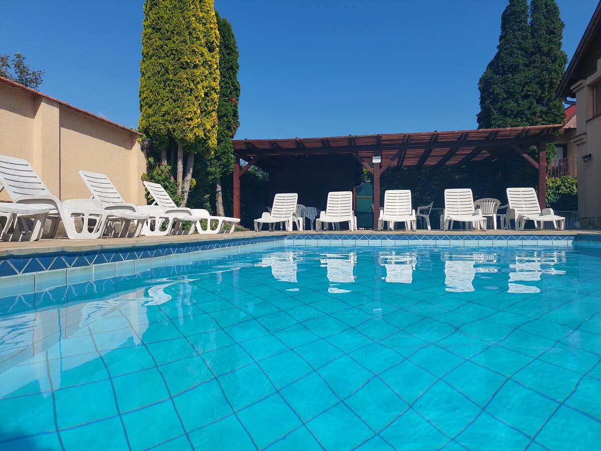 Hiša ob bazenu v Balatongyöröku