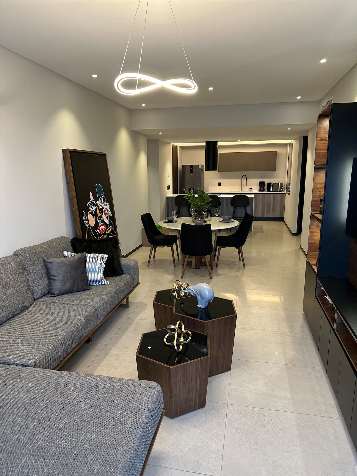 Odlično novo stanovanje v petem nadstropju, kjer lahko preživite nekaj mirnih in sproščenih dni z luksuznimi objekti, bazenom in telovadnico. Popolnoma opremljena kuhinja, pralni stroj, sušilni stroj, internet in 55"TV Odlična lokacija le 10 minut od stadiona Akron, 5 minut od nakupovalnih središč TEC of Monterrey, nakupovalnih središč, supermarketov in trgov.