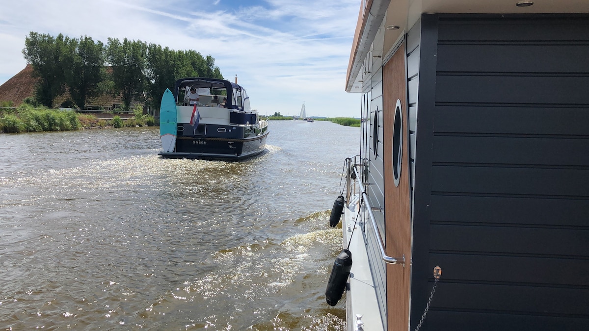 Počitnice na vodi ... v tej luksuzni vodni koči, primerni za največ dve odrasli osebi in dva otroka. Koča se nahaja na pomolu v živahnem kraju Uithaven v Kamperlandu.