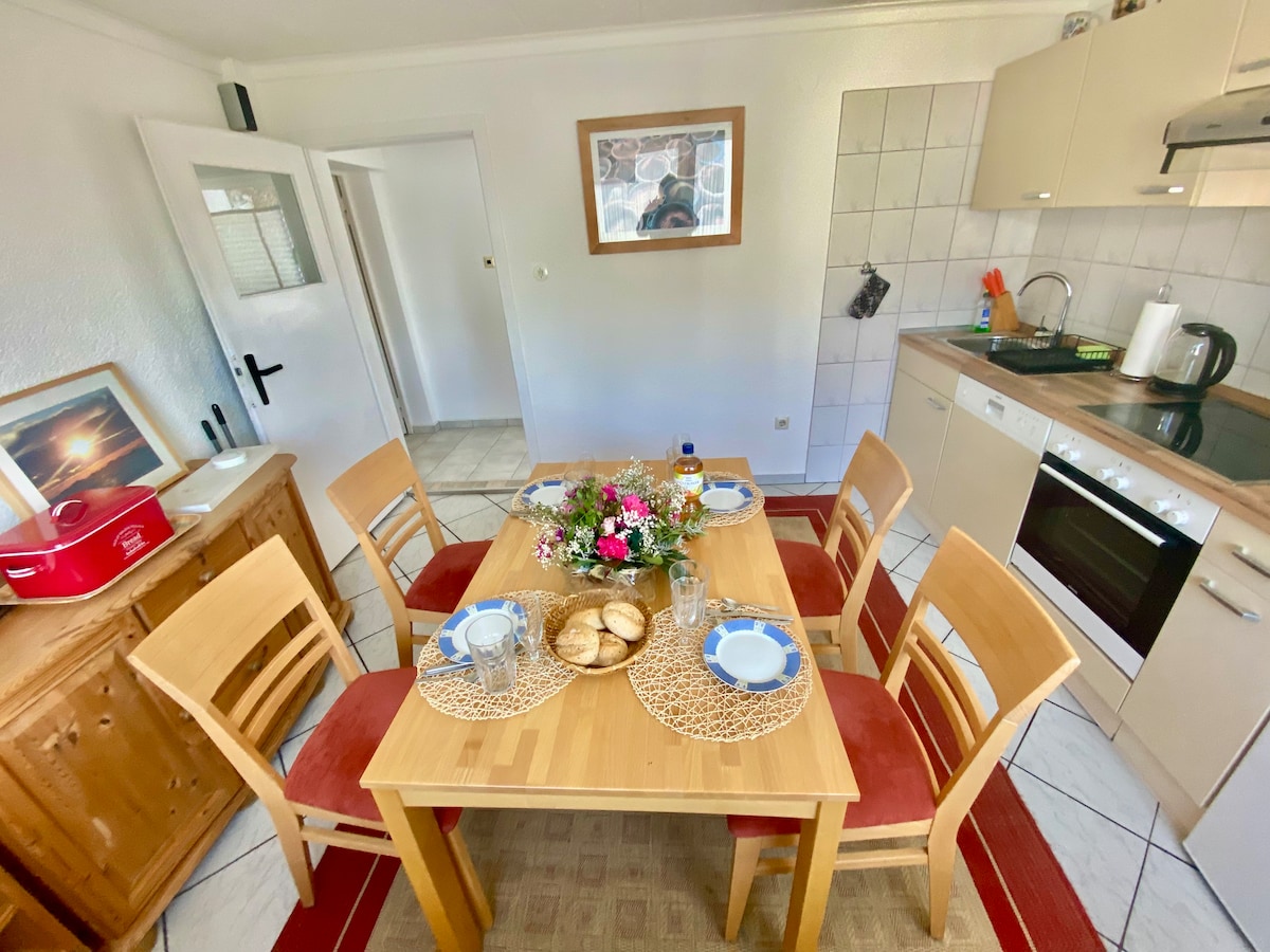 Apartma Eule v hiši Seeadler s prostorom za 4 osebe (60 m2). Dnevna soba s pohištvom iz lahkega lesa, vključno z ravnim zaslonom DVD, počivalnik in kavč, vključno s funkcijo spanja. Tajnica s prostorom za prenosnik, vključno z omrežjem Wi-Fi. Spalnica z zakonsko posteljo (180 x 200 cm), omaro in prostorom za otroško posteljico. Kuhinja (štedilnik s štirimi gorilniki, pečica, pomivalni stroj, hladilnik in zamrzovalnik, WM), vklj. Jedilnica s pogledom na gozd. Velika terasa z raztegljivim kavčem. Kopalna kad s prho in kadjo.