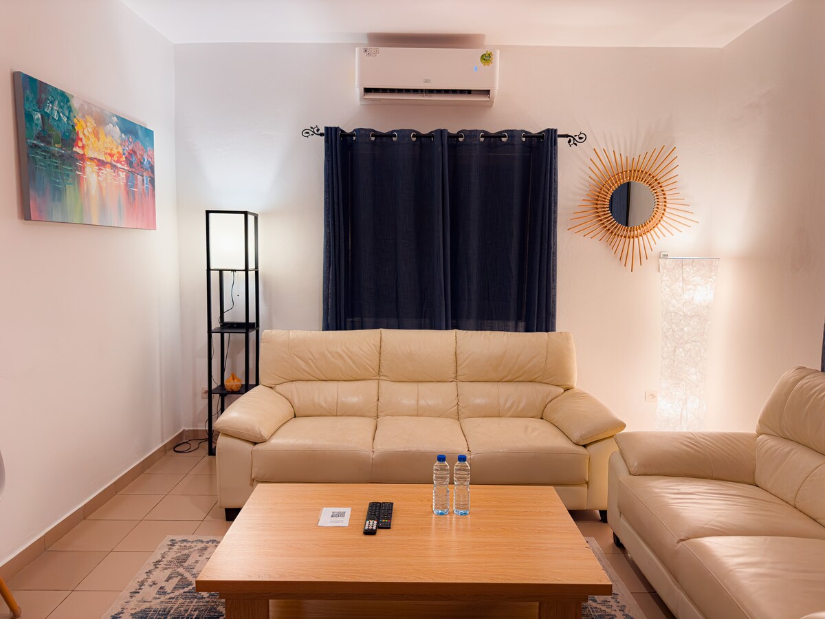 🏘️ Bienvenue à la Suite Elyséa, T3 de 85 m2 offrant un confort de type international, idéal pour un séjour Professionnel, en Famille ou entre Amis. ✨Pas de frais de service à votre charge ✨ A seulement : 🏟️3 min du CETEF-LOME (Togo 2000) et du Stade de Kegué 🛬6 minutes de l'Aéroport International de Lomé 🏖️15 min des plages et centre-ville 🧭 À proximité des commerces, pharmacies, boutiques