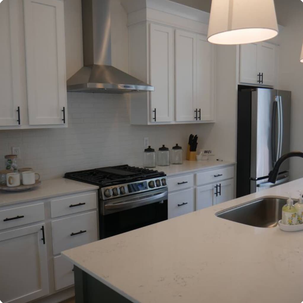 Spacious home sleeps up to 8. The master suite features a king bed, twin trundle, air mattress, 55” TV with soundbar, updated shower, soaking tub, and walk-in closet. Two additional bedrooms offer queen beds. Enjoy central air/heat, washer/dryer, smart lock, smoke alarms, and fire extinguisher. The kitchen includes a Keurig coffee maker for your stay.