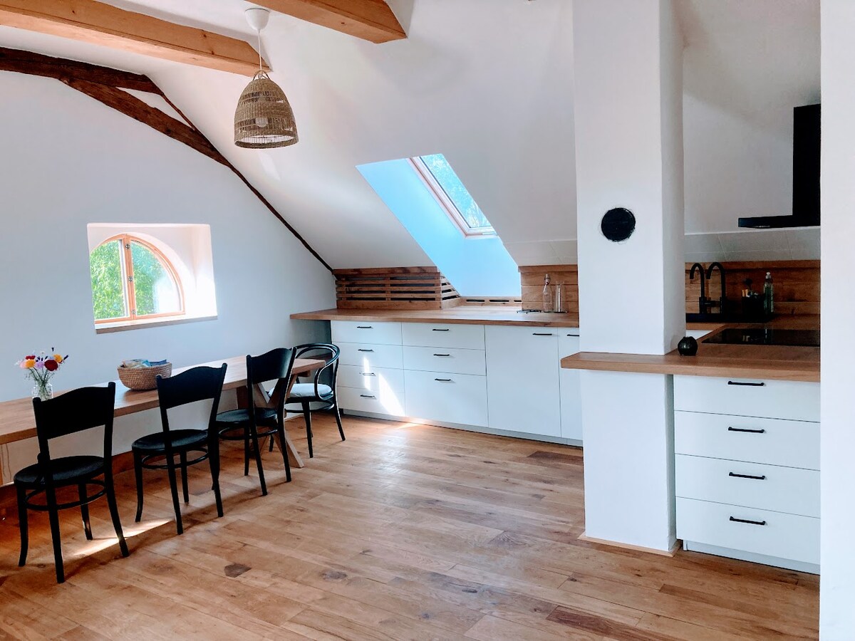 Un hébergement unique au cœur des Carpates blanches Nous vous invitons à séjourner dans notre appartement rénové, situé au premier étage dans les combles d'une ancienne tannerie, aujourd’hui transformé en "Klobucká Manufaktura". L’appartement offre un cadre chaleureux idéal pour un séjour confortable et authentique. En plus de votre hébergement, vous pourrez visiter notre musée du chapeau et, sur réservation, découvrir l’art de la chapellerie dans notre atelier.