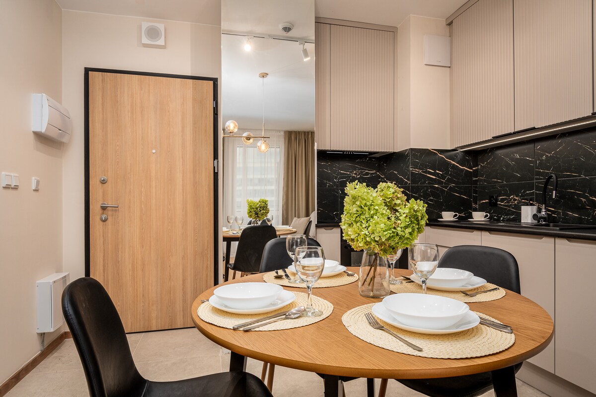 Full equipped for short and long terms stays. For 1 to 6 guests. Localized at 7 min by train from Center, our flat is full of natural elements, perfect to provide you a peaceful journey. From our large balcony you will observe all the Warsaw skyline. At the ground floor a supermarket is open 6am-22pm. The private quarter Soho Factory will provide you nature close to the city center. 🎨 Nearby : Soho Art Gallery, University SWPS, Wedel Chocolate Museum, National Stadium, Koneser Vodka Museum...