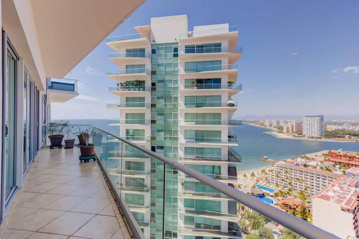Uživajte v osupljivem razgledu iz tega stanovanja ob oceanu v 14. nadstropju. Sprostite se na balkonu ob pijači, uživajte v lepotah zaliva Banderas, osupljivih sončnih zahodih in osvežujočem morskem vetriču. OPOMBA: poleg letovišča Sunscape Resort IMA STANOVANJE DOSTOP DO bazena ali skupnih prostorov v letovišču. Prostorna spalnica ima zakonsko posteljo in zakonsko posteljo, dnevni prostor pa vključuje kuhinjsko nišo, udobno sedežno garnituro, vrhunsko televizijo in stremming, Wi-Fi. Plaža je oddaljena le 10 minut hoje po istem pločniku