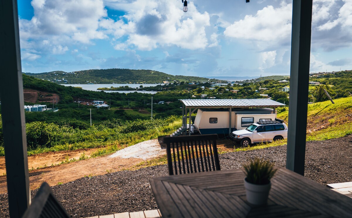 Relax and refresh at this unique and tranquil island getaway. Set in the tropical hillside of Mount Resaca, Casita Agua at Campo Alto is the perfect escape while visiting our beautiful island! Spend your days adventuring and your evenings relaxing in the pool. Our casita provides the perfect space for single travelers or couples looking to get away from it all! This studio unit features a dedicated plunge pool, queen bed, kitchenette and custom bath. Casita Agua has a backup water cistern.