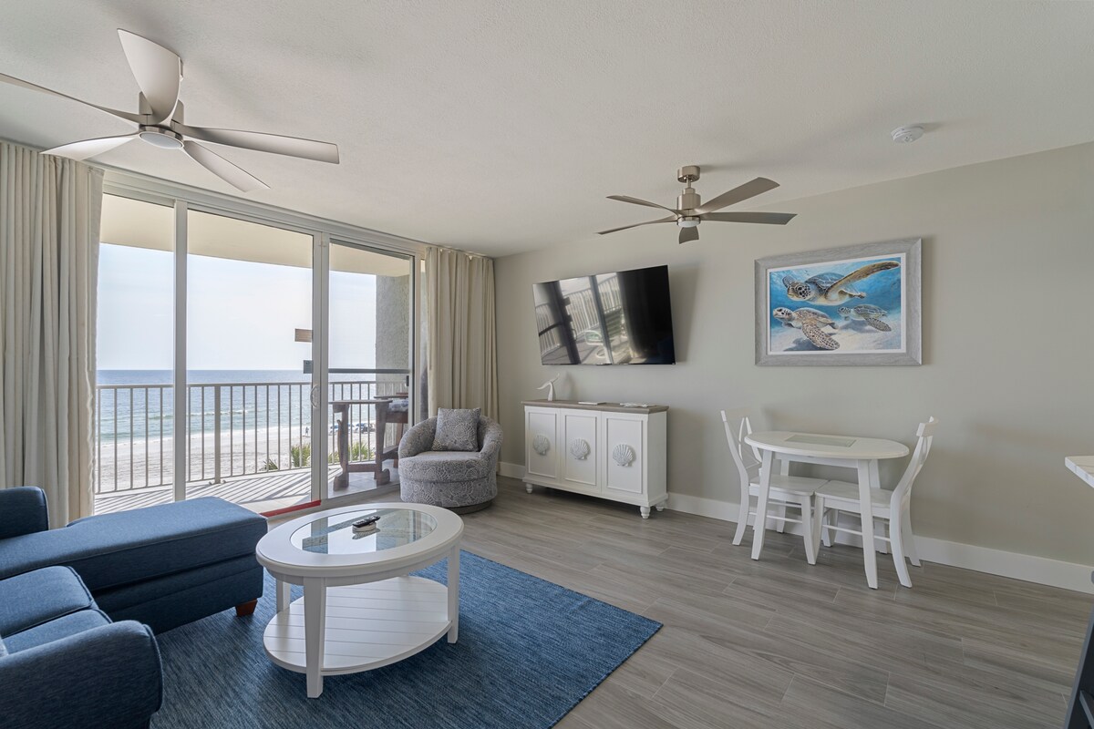 Majestic Beach Resort Tower 1, Studio, 5th Floor! Welcome to your Gulf-Front paradise! With outdoor and indoor pools, hot tubs, and 650 ft. of shoreline! So much to enjoy, all within the resort! A fitness center, Starbucks, H2O Bar & Grill, Market & Gift Shop, a movie theater and so much more! This studio condo sleeps 3. King size bed with new memory foam mattress. Twin rollaway cot. 65 inch Smart TV, Wi-Fi, fully equipped kitchen, private balcony overlooking the Gulf of Mexico!
