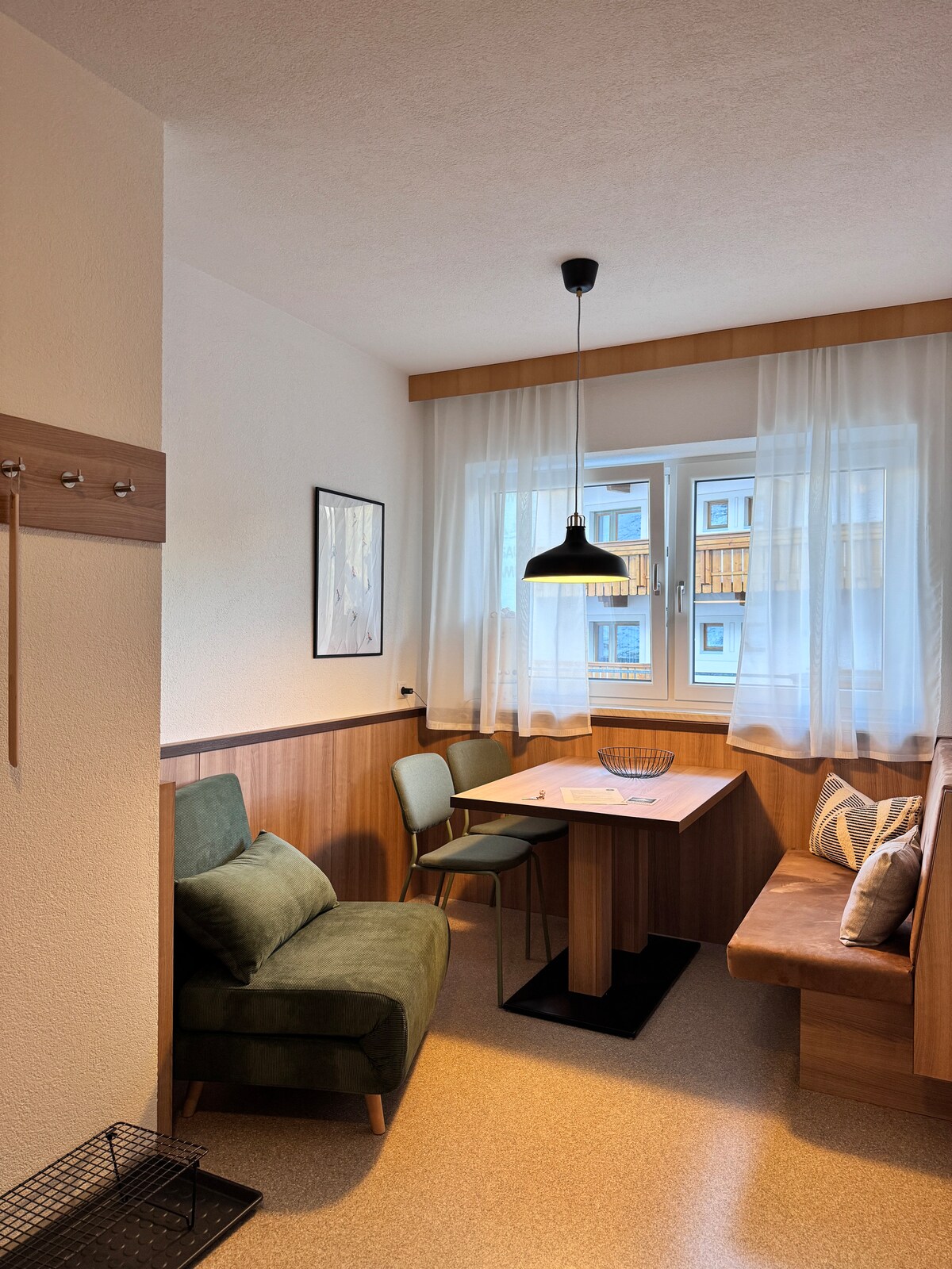 Garsonjera za 1-2 osebi - približno 21 m² - z balkonom in garažnim prostorom v središču Söldena. Kuhinja s pomivalnim strojem, hladilnikom, kuhalno ploščo in mikrovalovno pečico s funkcijo peke. Prostorna prha, stranišče, sušilnik za lase Dyson ter brisače za roke in kopalne brisače. Na voljo je tudi spa torba s kopalnim plaščem za brezplačno uporabo wellness prostora v našem nasprotnem partnerskem hotelu, predpražnik za jogo, nahrbtnik za vaše pustolovščine, Marshall zvočnik, flat TV in brezplačen Wi-Fi.