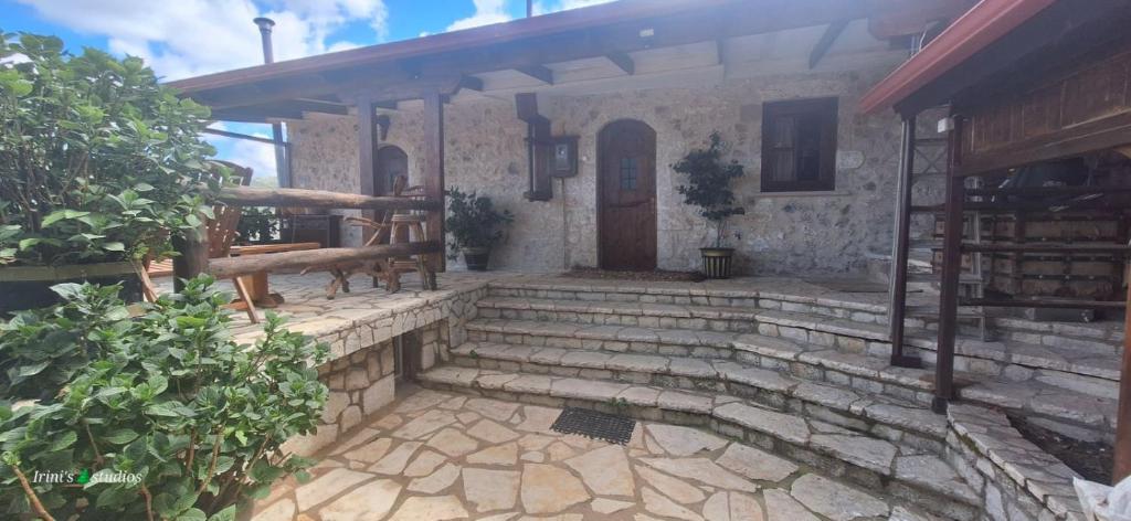 Naša majhna hiška se nahaja na začetku vasi za cerkvijo Agios Nikolaos. To je prostor, ustvarjen za večino lesa, zaradi česar je pozimi topel, poleti pa hladen. V spodnjem nadstropju je kuhinja, v kateri boste lahko pripravili kavo in čaj (brezplačno ga nudi nastanitev). V zgornjem nadstropju sta dve sobi, udobni za štiričlansko družino.